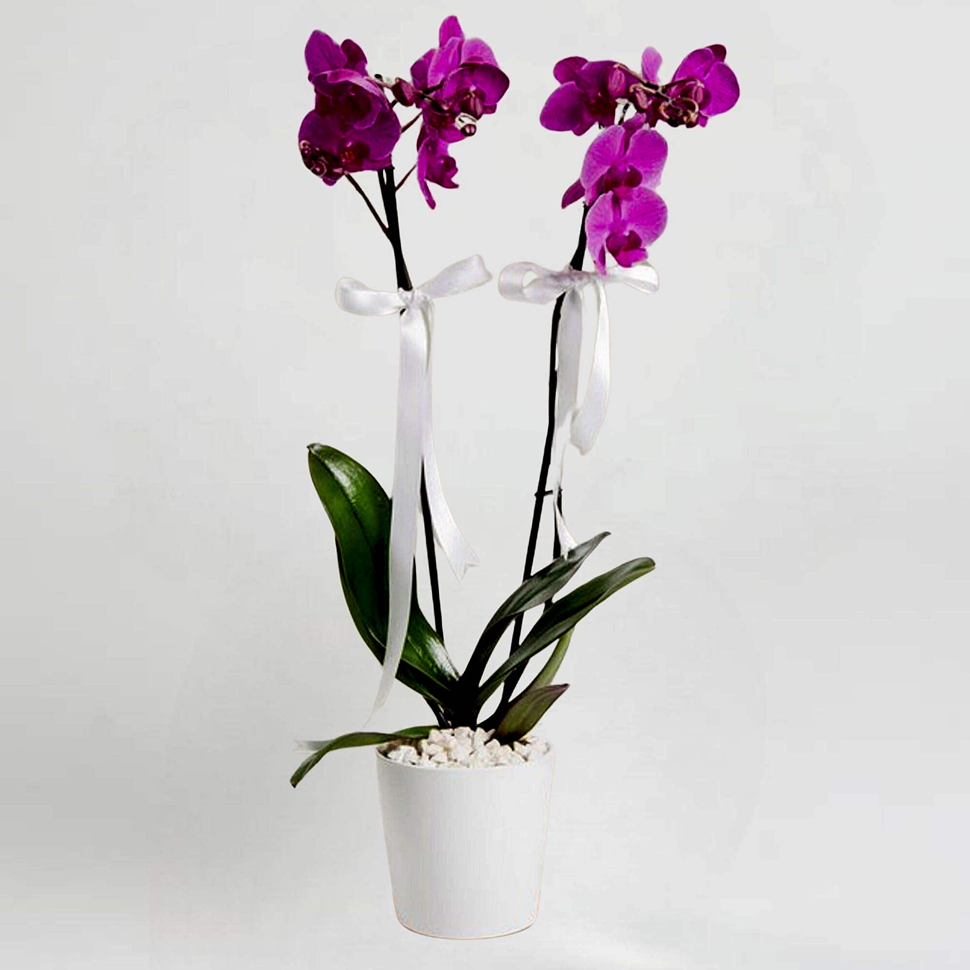 Saksılarında farklı temaları da tercih edebileceğiniz 2 dal mor orkide, zarif duruşuyla doğal güzelliğin bir yansıması olacak, hoş kokusuyla da sevdiklerinize enerji ve huzur verecek.