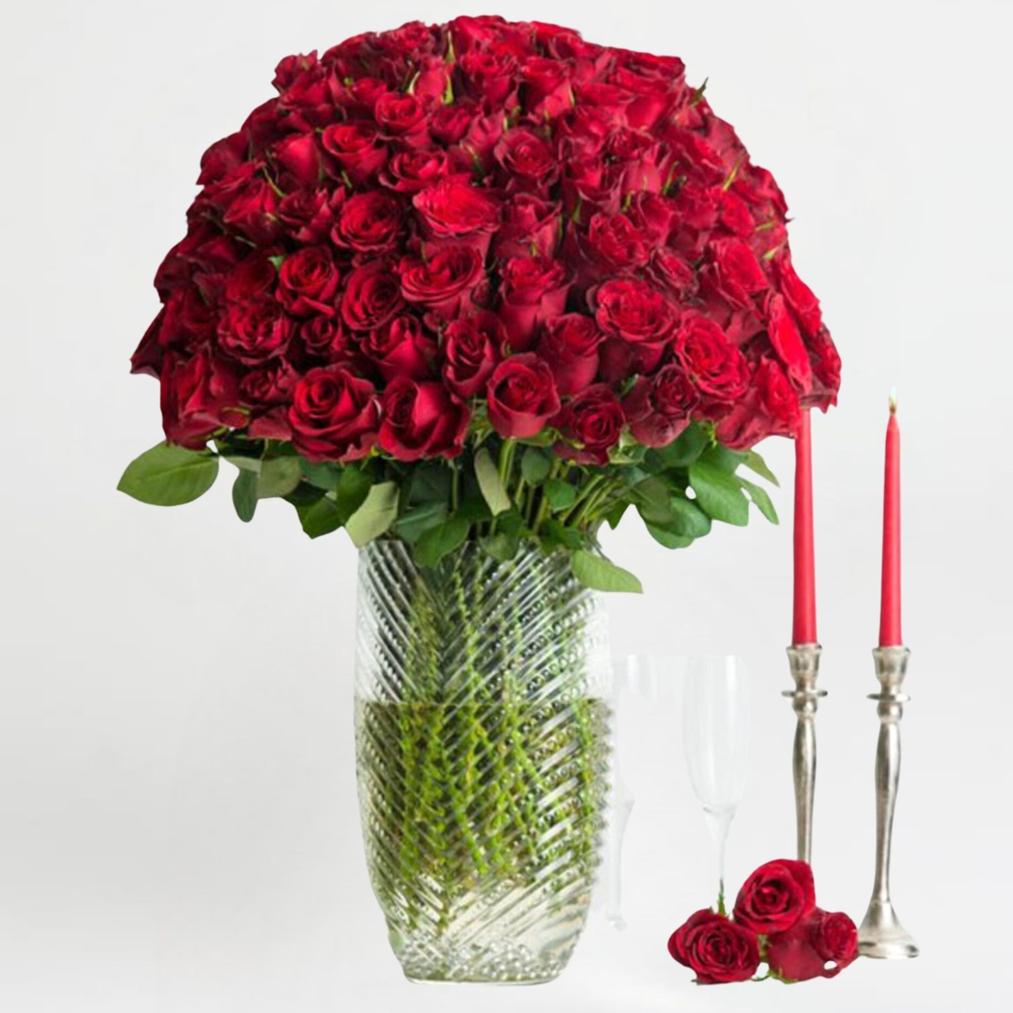 Aşkın simgesi olan ve yoğun hisleri ifade etmek için tercih edilebilecek en anlamlı hediye olan kırmızı güllerle hazırladığımız çok özel bir armağan olan bu buket, sevdiğinizin yüzünde koskocaman bir gülümsemeye sebep olacaktır. 200 adet taze kırmızı gülün özenle aranjman şıklığıyla buluşması sonucu ortaya çıkan bu görsel şölen, sevdiğinizin mutluluğunun sizin mutluluğunuza dönüşmesini sağlayacak.