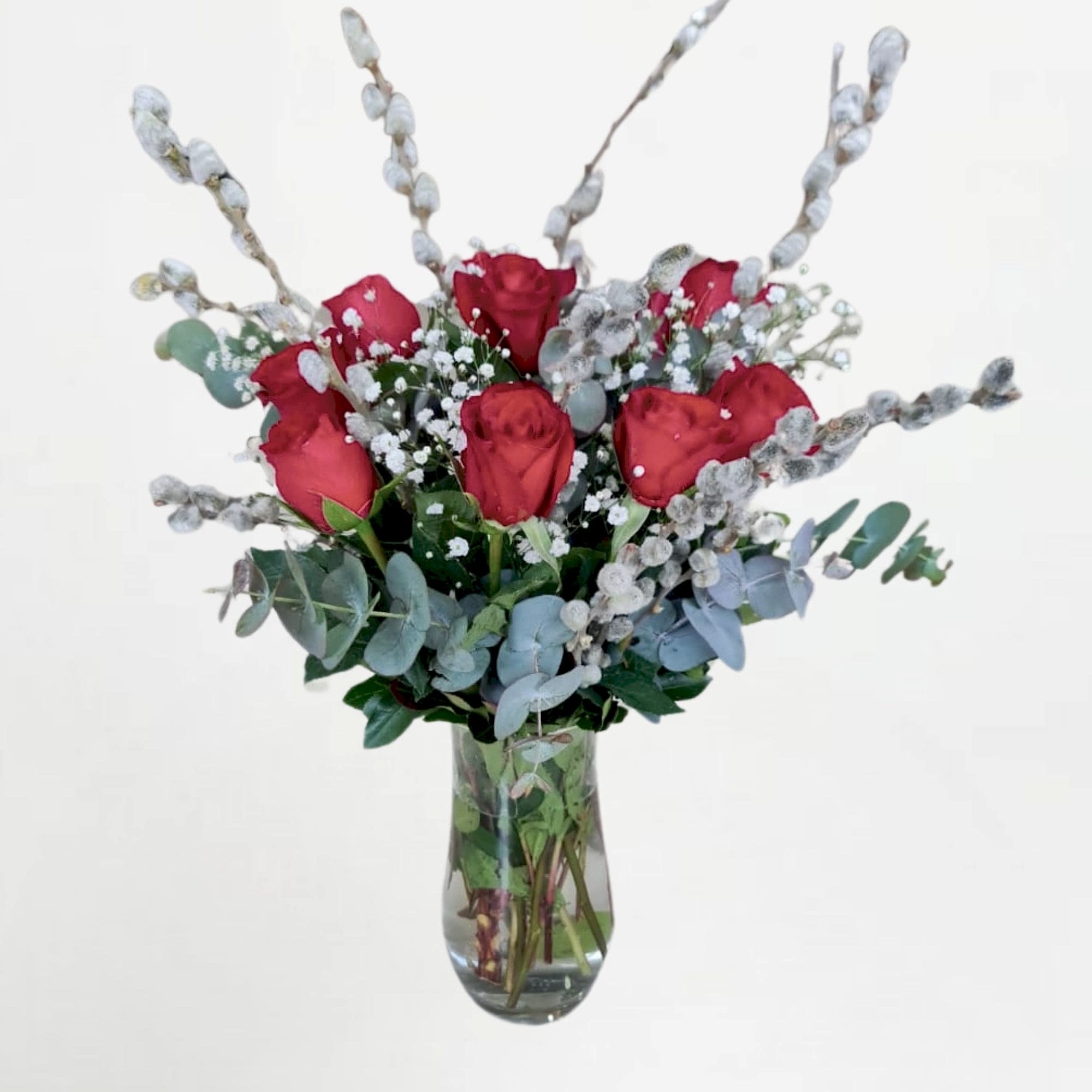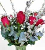 Aşkın ve zarafetin en güzel yansıması! ❤️ Romantik Dokunuş Buketi, tutkunun sembolü kırmızı güllerin, cipso ve okaliptusun doğal güzelliğiyle buluştuğu özel bir tasarım. Kuru söğüt dallarının zarif dokunuşu, aranjmana sofistike bir hava katıyor.