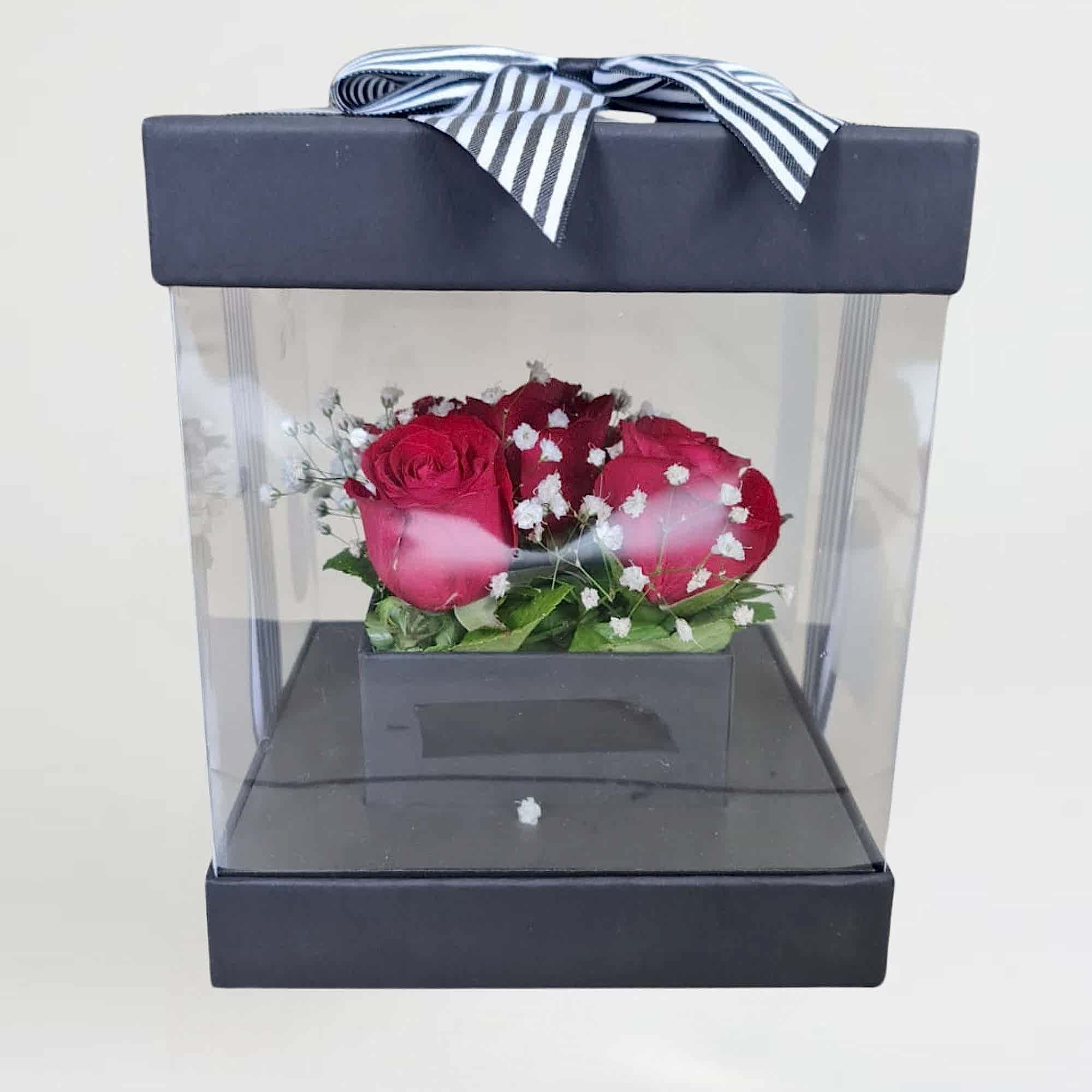 Şık ve zarif bir aşk ifadesi! ❤️ Siyah Kutuda Aşk, kırmızı güllerin romantizmini, modern ve şık bir tasarımla sunuyor. Siyah kutu içindeki bu özel aranjman, hem minimalist hem de göz alıcı bir hediye seçeneği sunuyor.