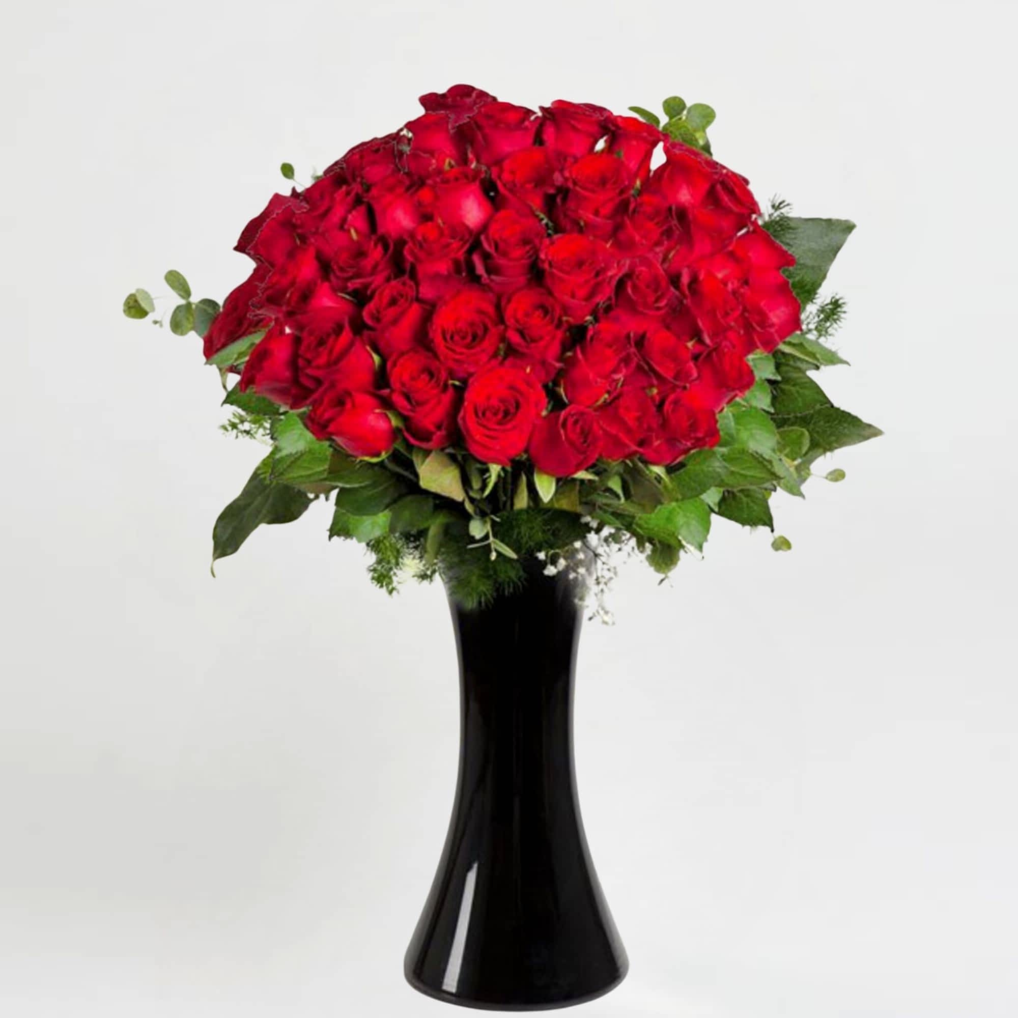 Aşkın simgesi olan ve yoğun hisleri ifade etmek için tercih edilebilecek en anlamlı hediye olan kırmızı güllerle hazırladığımız çok özel bir armağan olan bu buket, sevdiğinizin yüzünde koskocaman bir gülümsemeye sebep olacaktır. 40 adet taze kırmızı gülün özenle aranjman şıklığıyla buluşması sonucu ortaya çıkan bu görsel şölen, sevdiğinizin mutluluğunun sizin mutluluğunuza dönüşmesini sağlayacak.